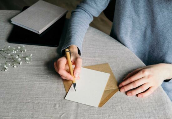 Wenn Sie in Schriftform kondolieren, schreiben Sie am besten von Hand auf schlichtem weißen Papier oder einer selbstgestalteten Trauerkarte. Ein Brief bietet aber mehr Platz und wird häufig eher aufbewahrt als eine Karte. Natürlich gibt es auch schöne Trauerkarten aus dem Handel, die Sie geschmackvoll beschriften können.