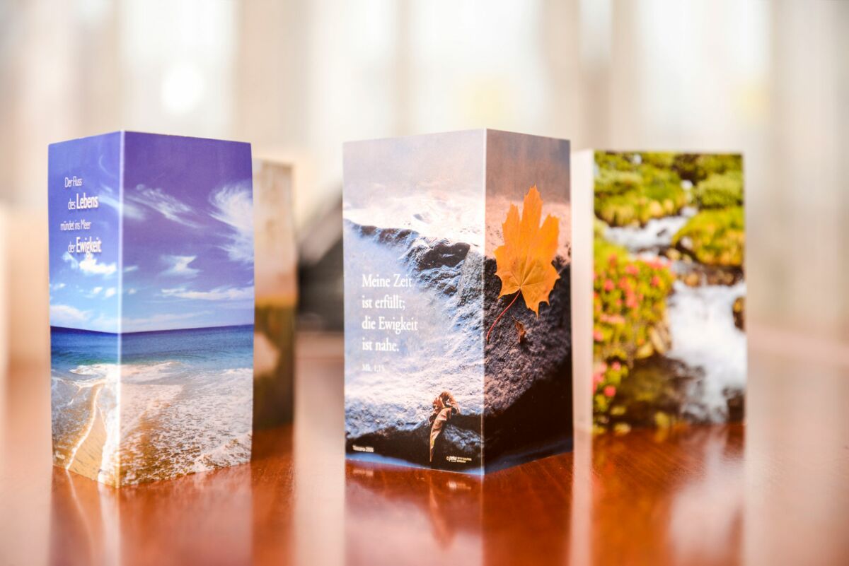 Erde, Feuer, See – drei Bestattungsarten, viele Beisetzungsmöglichkeiten. Noch ist in unserer Region die Tradition des Familiengrabes weit verbreitet. Haben Sie kein Familiengrab und hat sich Ihre Angehöriger zu Lebzeiten nicht geäußert, wie und wo er bestattet werden möchte, zeigen wir Ihnen auf, welche Möglichkeiten es gibt. Dabei helfen wir Ihnen dann eine Entscheidung zu treffen, die Ihrer Trauerarbeit guttut. Grundsätzlich raten wir zu einer Bestattungsform, bei der Sie später einen festen Ort, einen Grabstein oder zumindest eine Namenstafel aufsuchen, an der Sie Blumen ablegen und sich dem geliebten Angehörigen nahe fühlen können. Aber natürlich kann es auch gute Gründe für alternative Bestattungsformen geben.